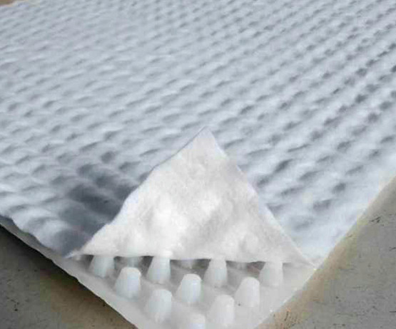 高分子防護排水異型片自粘土工布卷材是由高密度聚乙烯(HDPE)純白原料,在熔融狀態(tài)下經(jīng)真空吸塑一次成型制成,制造出的單向連續(xù)密閉殼體型凸起的板狀材料,形成一種膜、殼連接,具有立+體排水空間和一定支撐剛度,液體、氣體可以在其內(nèi)流動的防護排水卷材。